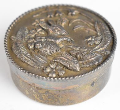 Set of four Elizabeth II hallmarked silver pill or trinket pots each decorated with wildlife comprising hedgehog, mouse, rabbit and squirrel, Birmingham 1979 and 1980, maker Birmingham Mint, diameter 5cm, weight of all four 168g
