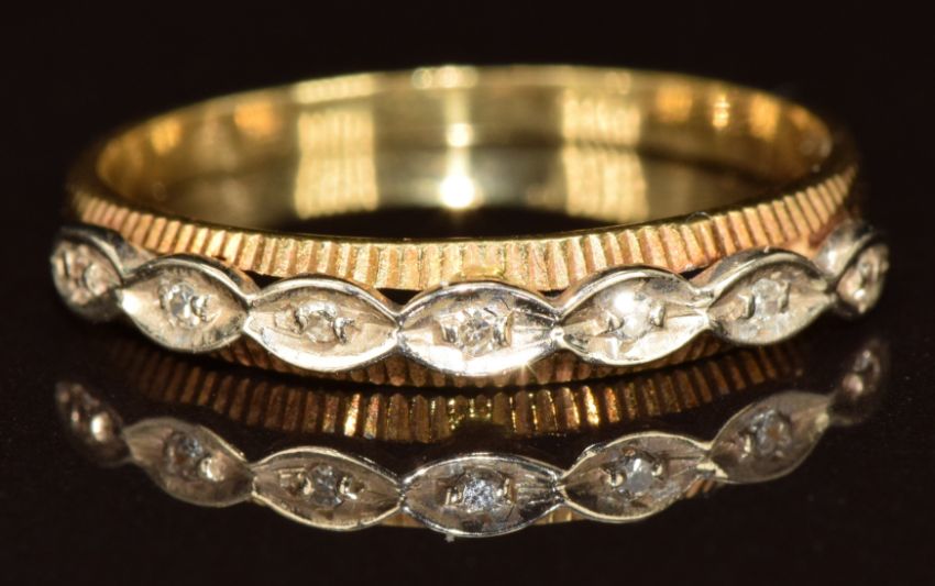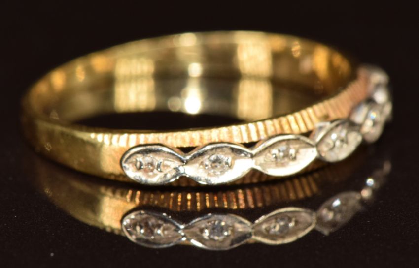 An 18ct gold ring set with seven diamonds, 2.3g, size P