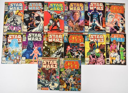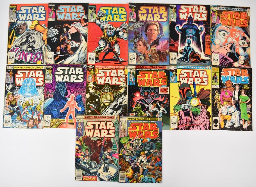 Fifty nine Star Wars comics by Marvel (1977) to include issue #42, Boba Fett bounty hunter cover and #107 final issue.