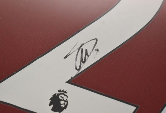 Xherdan Shaqiri framed montage comprising a signed Liverpool ‘96 replica shirt, mounted in box frame with colour photo, accompanied by hologrammed COA and certification number, 70 x 40cm