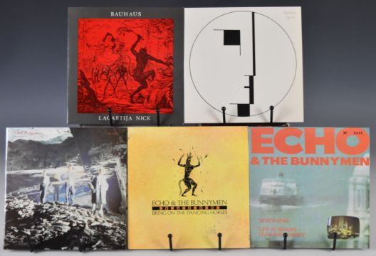 Collection of approximately forty Post Punk / New Wave / Punk Rock / Goth Rock and Alternative Rock 7" singles including Richard Hell And The Voidoids, seven Echo And The Bunnymen, six Bauhaus, Northern Bushmen, Happy Hooker Worms (explicit insert), six The Cult, two The Doll, Roger Waters, Stiff Little Fingers flexi disc, two Love And Rockets, The Sound, five Gene Loves Jezabel, Moonchild, two Fields of Nephilim, Duffo, Steve Harley, Kate Bush, Carter The Unstoppable Sex Machine etc. The vinyl and covers appear Ex to Ex+ in the main, some of the vinyl will likely grade NM