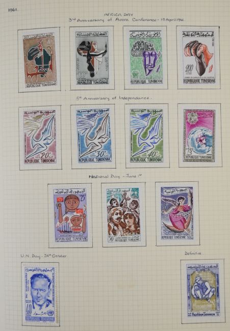 Stamp collection in album and two stockbooks, including good range of Tunisia 1930's-60's, mostly mounted mint, and Israel, some with tabs and a stockbook of GB first day covers including 1953 Coronation on pictorial cover