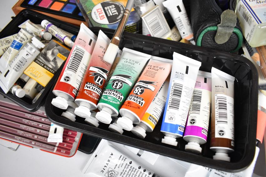 Large quantity of artist's materials including acrylics, pastels, brushes, watercolours, oils, etc