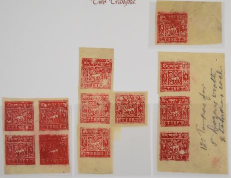 Tibet stamp collection on album leaves including mint blocks and one cover