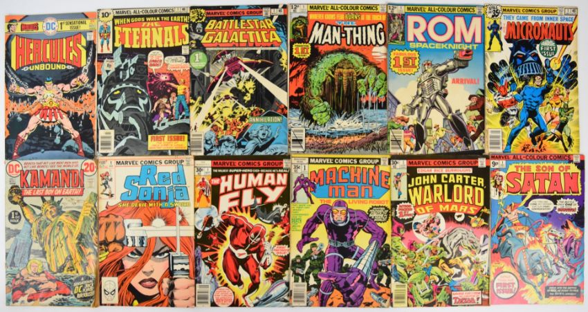 Two hundred and sixty Bronze Age Marvel and DC comics to include The Eternals, The Inhumans, Conan, The Thing, ROM Spaceknight, Black Panther, Moon Knight, Battlestar Galactica,  Killraven, The Micronaughts, 2001, Man-Thing, Kazar, The Human Fly, Red Sonia and Kamandi.