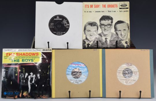 Approximately eighty five mainly 1960s and 1970s 7" singles, thirty four Tamla Motown mainly black label TMG, the remainder Pop / Rock / Rock 'n' Roll / Beat etc, including several Beatles singles on Parlophone, two EMIdiscs / acetates, eight EP picture sleeves - Gerry and the Pacemakers, The Merseybeats, The Tornados, The Searchers, several Cadilacs releases on USA Josie label, Lee Andrews and the Hearts on USA Chess, Tamla Motown including Edwin Starr, Four Tops, Stevie Wonder, Supremes, Marvin Gaye, Temptations, Jackson 5, Martha Reeves etc
