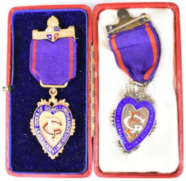 Collection of thirty enamelled, gilt and silver Masonic and similar medals including 1944 enamelled medal to Francis Higgins of Dolphin Lodge 3778, in lined box with Birmingham jeweller's details, Monmouthshire P.G.L., Crossbrook Lodge with colour picture enamel, medals for the Institute of Girls 1965 & 1969, Overseas Buffaloes Association, Investiture of H.R.H. Prince of Wales 1969, Institute for Boys 1956, collar jewels for Oxfordshire and Middlesex, S.R.I.A. medal, Independent Order of Odd Fellows Manchester Unity for 1936, 1950 and another Silver Jubilee Chapter, 1964 R.M.I.G. etc, with several hallmarked and a few boxed