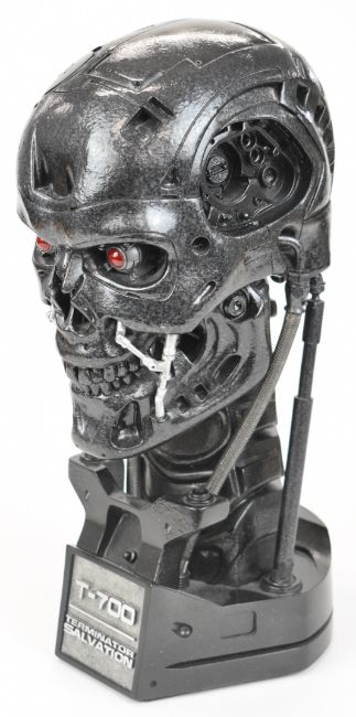 Sideshow Collectibles 1:1 scale Terminator Salvation T-700 Endoskull painted resin bust with LED features, height 38cm, in original box.