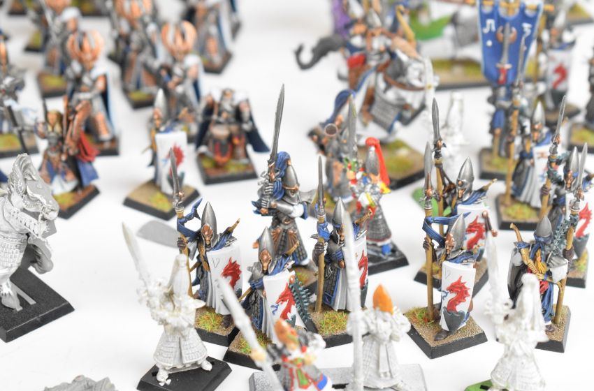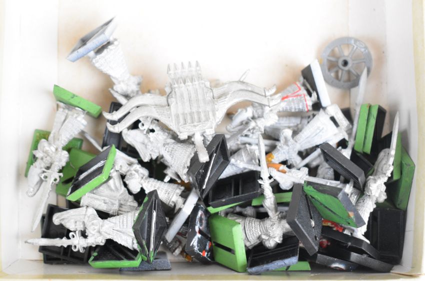 A collection of white metal and plastic Games Workshop Warhammer miniatures comprising mostly Elven armies, some in original boxes.