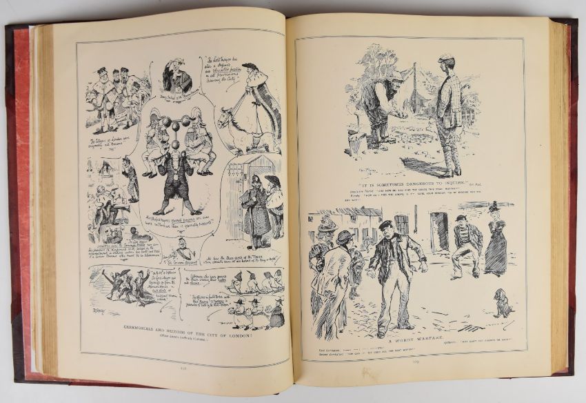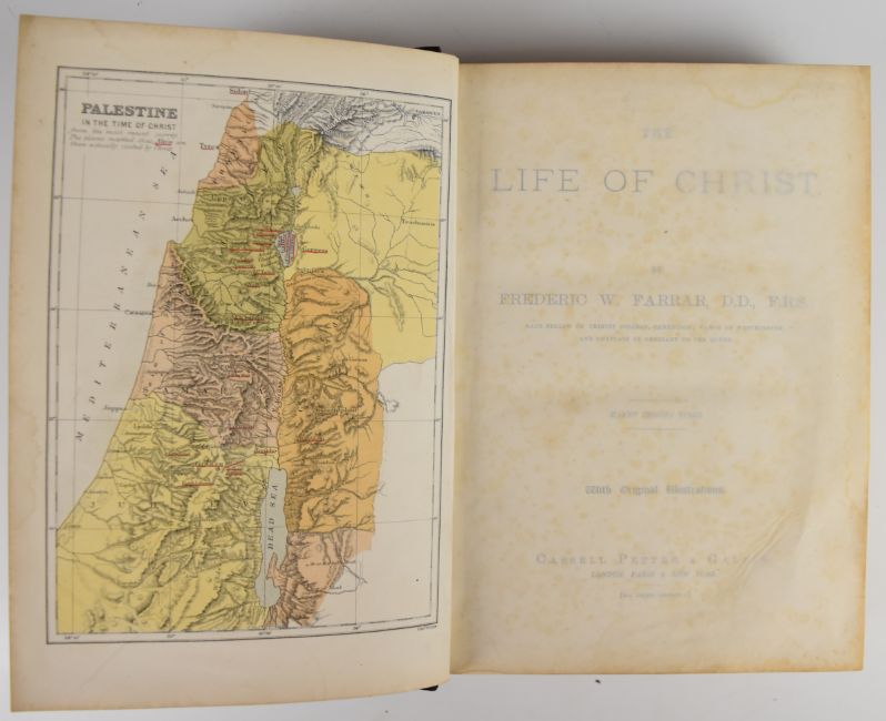 [Shakespeare] Works of Shakspere Imperial Edition edited by Charles Knight, illustrated with steel engravings, published Virtue (c.1870s) in 2 folio volumes, recently bound in full half leather with raised bands and gilt decorated spines. Robinson Crusoe by Daniel Defoe with upwards of 100 wood engravings published Cassell (c.1870s), in half leather. Farrar’s Life of Christ with coloured map and original illustrations (c.1880), in half leather. The Book of Martyrs by John Foxe illustrated (c.1880s). Bunyan’s Pilgrim's Progress illustrated by H.C. Selous and M. Paolo Priolo (c.1880s). A Collection Of Novels By Charles Dickens, published by Chapman & Hall (c.1870s), bound in three half leather volumes and Pictures From Punch volume IV bound in modern half leather
