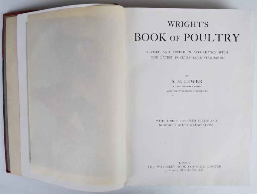 Wright’s Book of Poultry Revised and Edited in Accordance with The Latest Poultry Club Standards by S.H. Lewer with 30 coloured plates and numerous illustrations, published The Waverley Book Company (c.1910), bound in half leather with a gilt lettered spine. A History of The Vegetable Kingdom; Embracing The Physiology Of Plants with Their Uses To Man And The Lower Animals by William Rhind and illustrated with several hundred figures, published Blackie 1862 with steel engravings coloured plates and text illustrations, bound in half leather with gilt title. English Botany or Coloured Figures of British Plants edited by Boswell Syme and Mrs. Lancaster with illustrations by Sowerby etc, published Robert Hardwicke 1866, volume six only in publisher's gilt cloth (3)