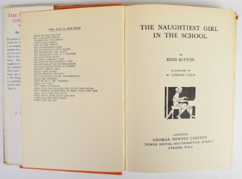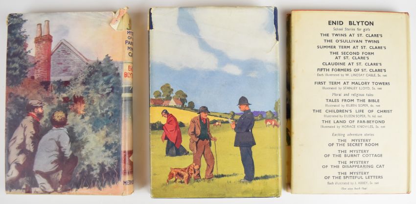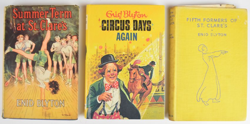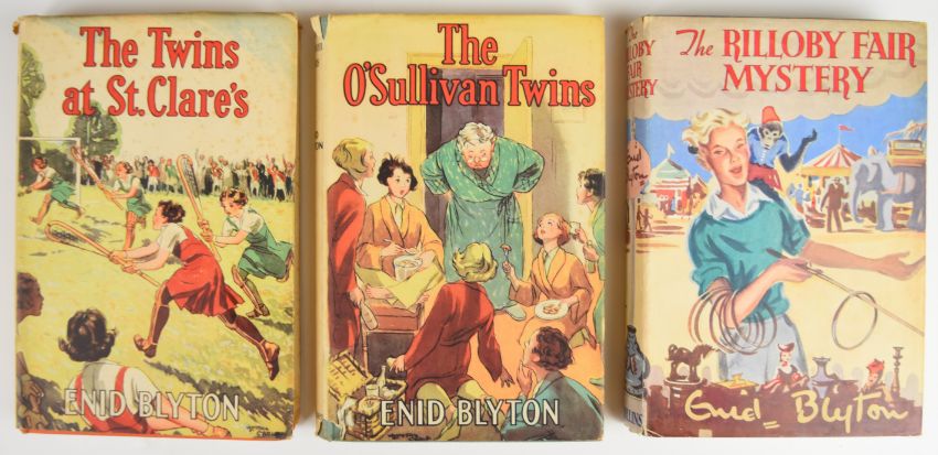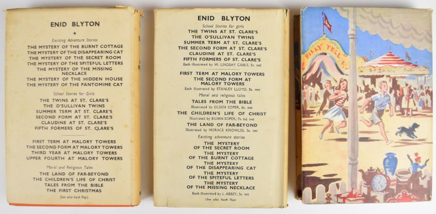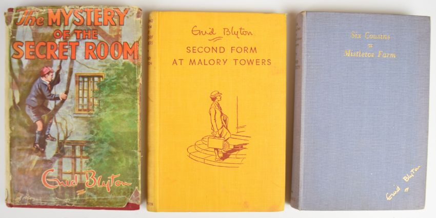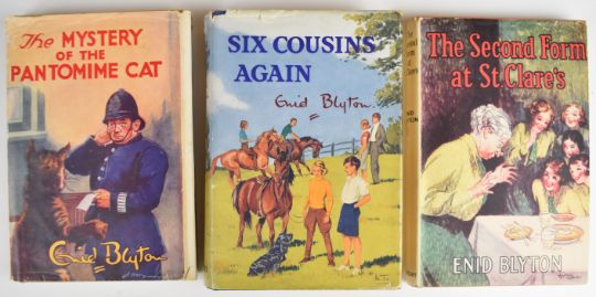 Enid Blyton collection including ten first editions comprising Mystery Of The Pantomime Cat 1949, Mystery Of The Secret Room 1945, The Rockingdown Mystery 1949, The Rilloby Fair Mystery 1950, Fifth Formers Of St. Clare’s 1945, House At The Corner 1947, The Put-Em-Rights 1946, Six Cousins Again 1950, Six Cousins At Mistletoe Farm 1948, Second Form At Malory Towers 1947 together with later editions of The Twins At St. Clare’s 1949, First Term At Malory Towers 1948, Second Form At St. Clare’s 1947, The O’Sullivan Twins 1948, Naughtiest Girl Is A Monitor 1948 and four other titles, with many in colour dust-wrappers (19)