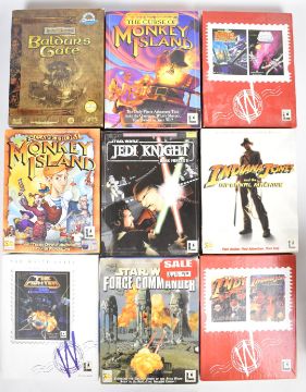Twenty LucasArts and similar PC CD-ROM fantasy and adventure games to include The Curse of Monkey Island, Day of the Tentacle, Full Throttle, Toonstruck, Indiana Jones and the Fate of Atlantis, Star Wars Force Commander, Jedi Knight II, Baldur's Gate, Neverwinter Nights, Final Fantasy VII and UFO Trilogy, in original boxes with manuals.