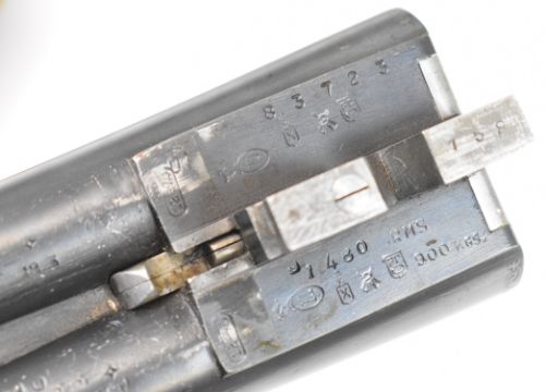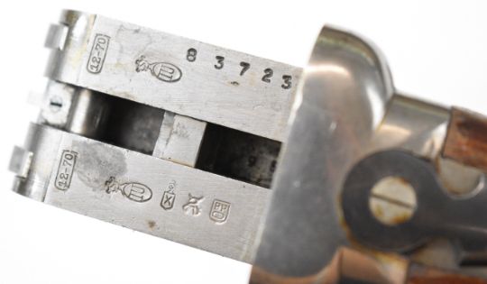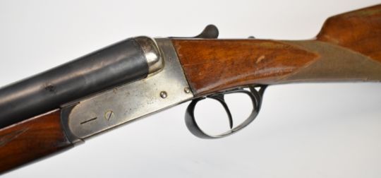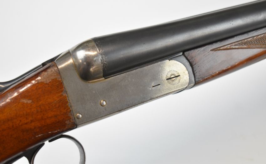Master 12 bore side by side ejector shotgun with chequered grip and forend, double trigger and named 27.75 inch barrels choked full and ½, overall length 112.5cm, length of pull 36cm, serial number 83723. PLEASE NOTE THAT A VALID RELEVANT SHOTGUN CERTIFICATE IS REQUIRED TO VIEW OR PURCHASE THIS LOT AND FOR ALL SHOTGUNS OR RIFLES PLEASE ENSURE YOU HAVE THE RELEVANT CERTIFICATE BEFORE BIDDING.