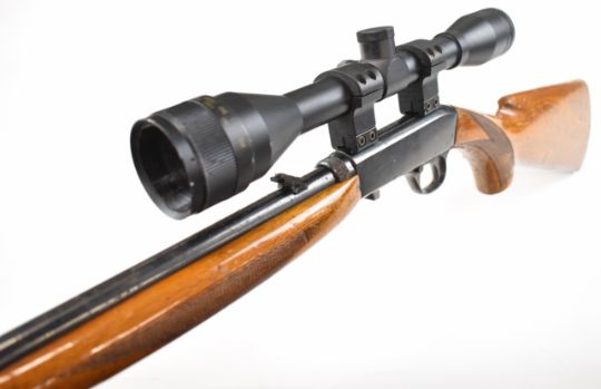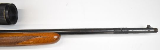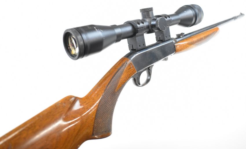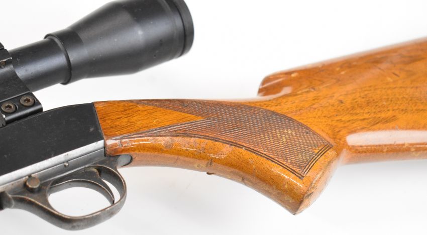 Browning .22 semi-automatic take-down rifle with chequered semi-pistol grip and forend, adjustable sights, Tasco 4x40 scope and 19 inch barrel, overall length 93.5cm, serial number 99789. PLEASE NOTE THAT A VALID RELEVANT FIREARMS CERTIFICATE IS REQUIRED TO VIEW OR PURCHASE THIS LOT AND FOR ALL SHOTGUNS OR RIFLES PLEASE ENSURE YOU HAVE THE RELEVANT CERTIFICATE BEFORE BIDDING.