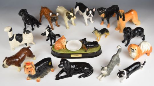 Seventeen Beswick / John Beswick cat and dog figures including 'Sharing', tallest 14cm