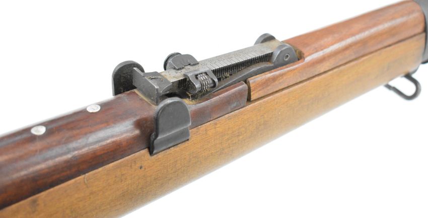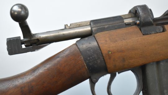 Deactivated BSA Short Magazine Lee Enfield (SMLE) Mk III .303 bolt-action rifle with adjustable sights, storage compartment to the brass butt plate, frame stamped 'B.S.A.Co. 1915 Sht.L.E. III' and 25 inch barrel, overall length 113cm, serial number 97860, with deactivation certificate dated 13/01/2025.