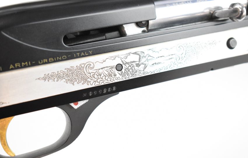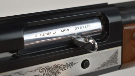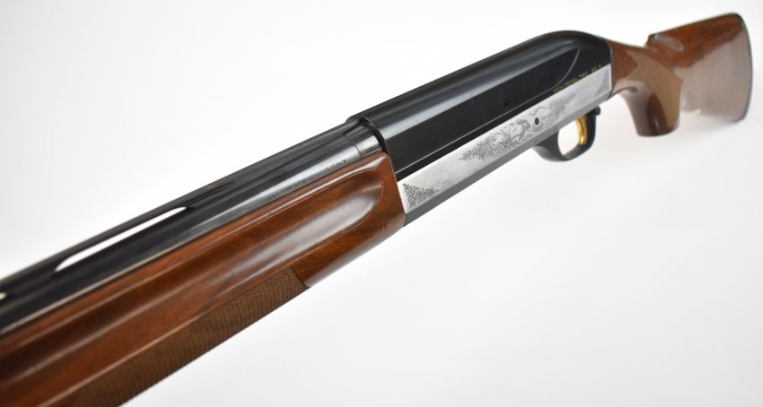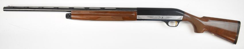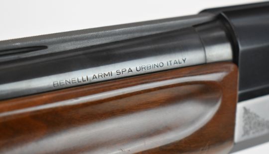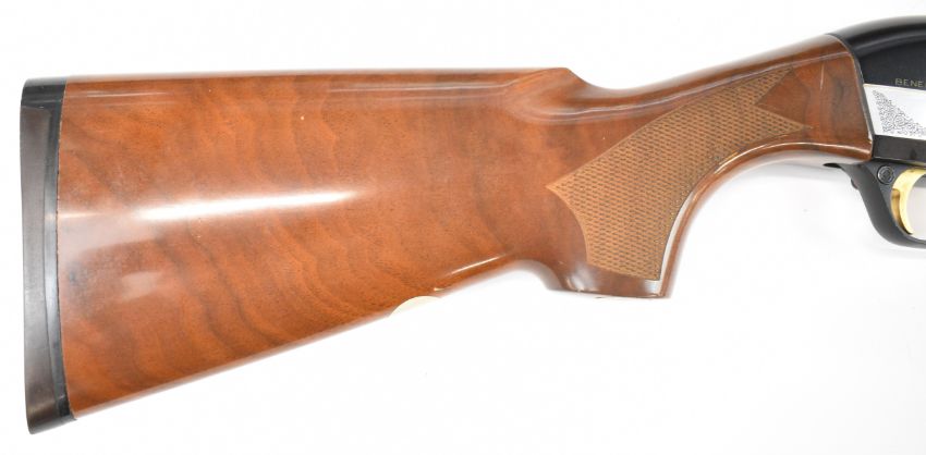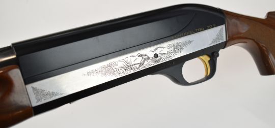 Benelli 20 bore 3-shot semi-automatic shotgun with engraved action, chequered semi-pistol grip and forend, vented rib and 26 inch multi-choke barrel, overall length 114.5cm, length of pull 31cm, serial number N011293. PLEASE NOTE THAT A VALID RELEVANT SHOTGUN CERTIFICATE IS REQUIRED TO VIEW OR PURCHASE THIS LOT AND FOR ALL SHOTGUNS OR RIFLES PLEASE ENSURE YOU HAVE THE RELEVANT CERTIFICATE BEFORE BIDDING.