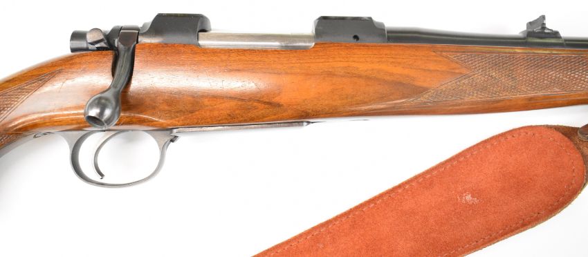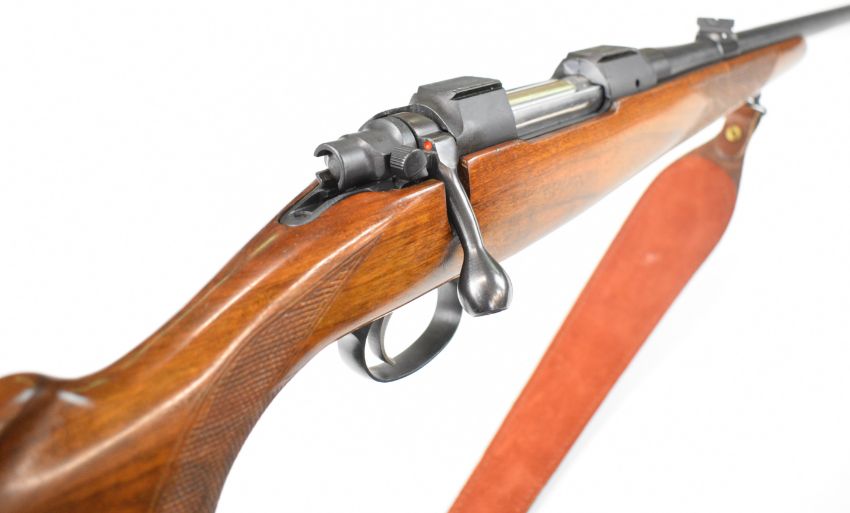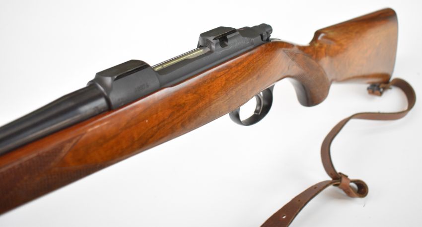 BRNO Model ZKK-601  7.62 bolt-action rifle with chequered semi-pistol grip and forend, leather sling, fixed sights and 24.5 inch barrel, overall length 110cm, serial number 49974. PLEASE NOTE THAT A VALID RELEVANT FIREARMS CERTIFICATE IS REQUIRED TO VIEW OR PURCHASE THIS LOT AND FOR ALL SHOTGUNS OR RIFLES PLEASE ENSURE YOU HAVE THE RELEVANT CERTIFICATE BEFORE BIDDING.