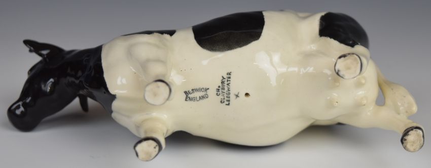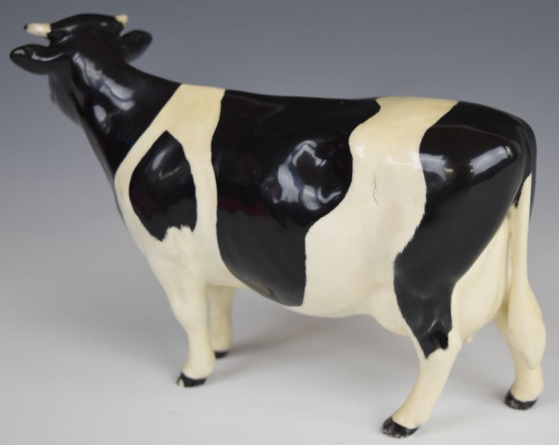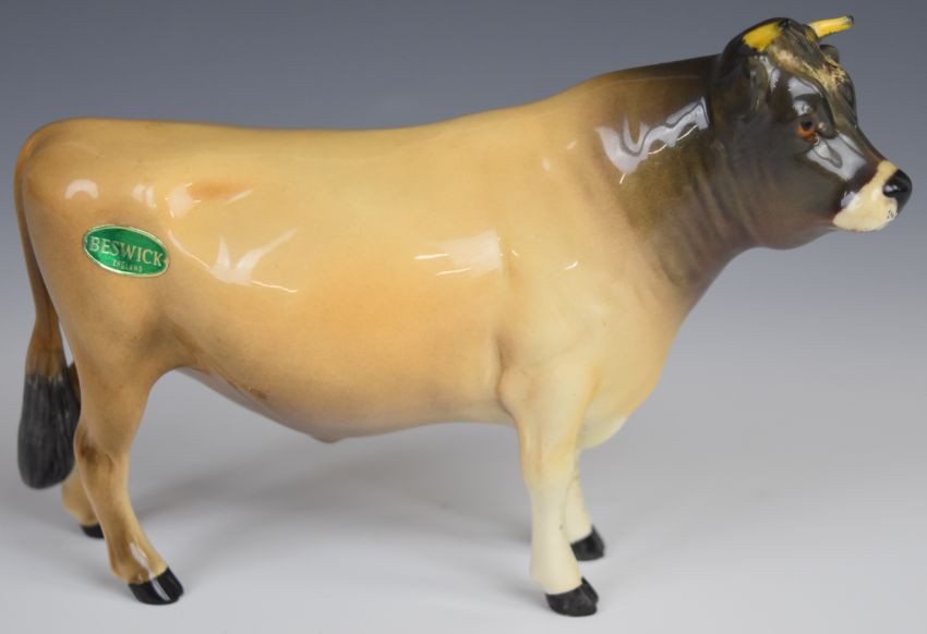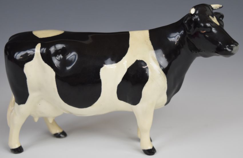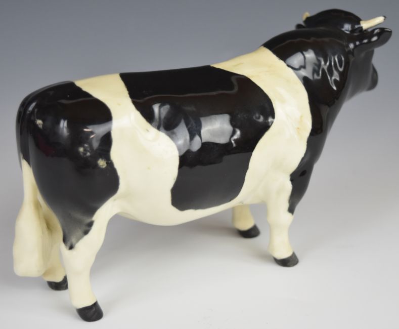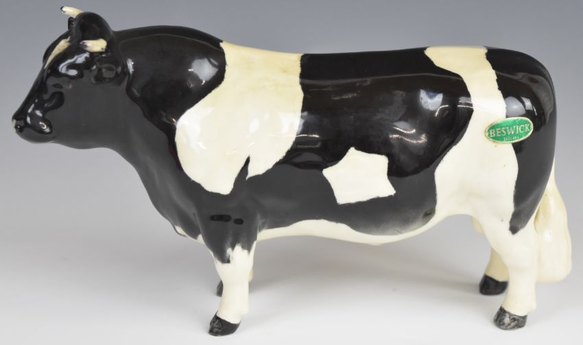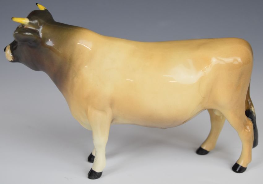 Beswick Jersey and Friesian bull, cow and calf figures