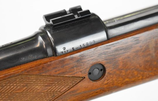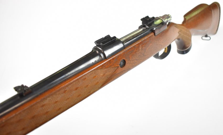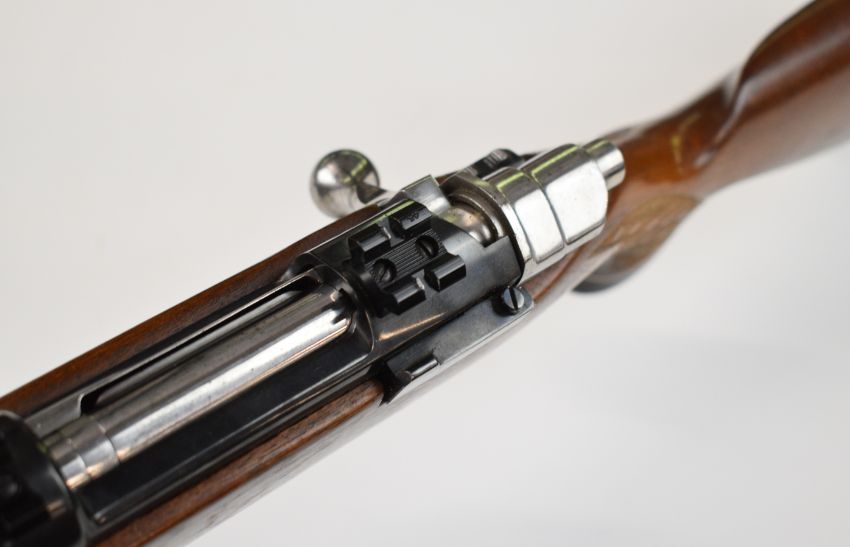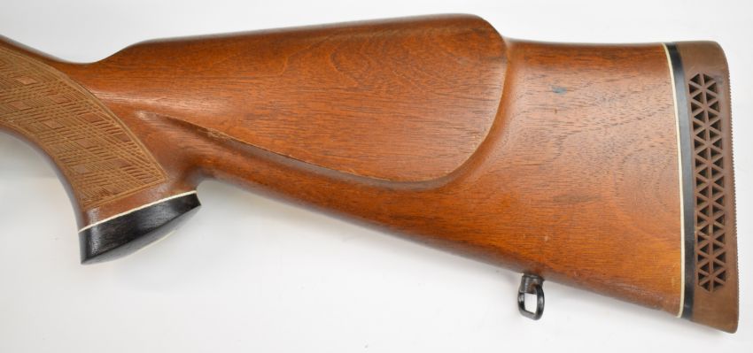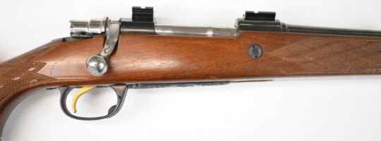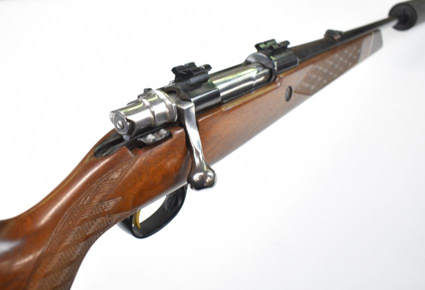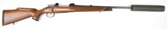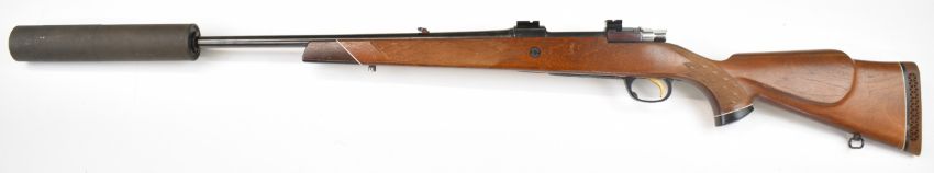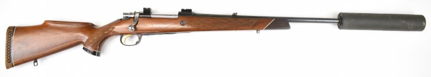 Parker-Hale .270 bolt-action rifle with chequered semi-pistol grip and forend, raised cheek piece, sling mounts, scope rails, adjustable sights, sound moderator and 28 inch barrel, overall length 123cm, serial number S-15859. PLEASE NOTE THAT A VALID RELEVANT FIREARMS CERTIFICATE IS REQUIRED TO VIEW OR PURCHASE THIS LOT AND FOR ALL SHOTGUNS OR RIFLES PLEASE ENSURE YOU HAVE THE RELEVANT CERTIFICATE BEFORE BIDDING.