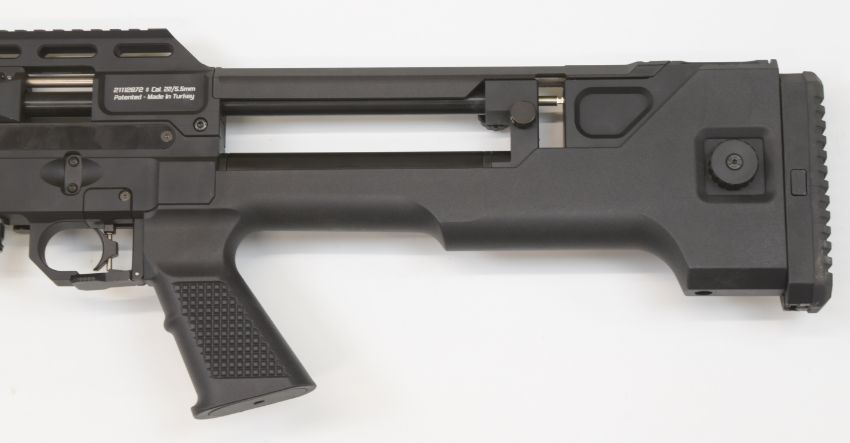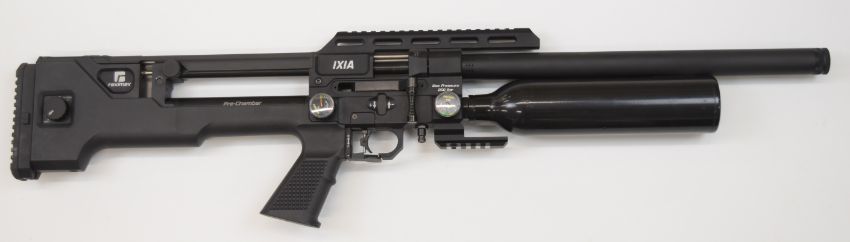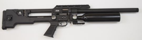 Reximex IXIA .22 PCP FAC carbine air rifle with textured pistol grip, composite skeleton stock, two 12 shot magazines, adjustable trigger and butt plate, bi-pod and scope rails, serial number 21112872, in original case with tags, instructions and outer card sleeve. PLEASE NOTE THAT A VALID RELEVANT FIREARMS CERTIFICATE IS REQUIRED TO VIEW OR PURCHASE THIS LOT AND FOR ALL SHOTGUNS OR RIFLES PLEASE ENSURE YOU HAVE THE RELEVANT CERTIFICATE BEFORE BIDDING.