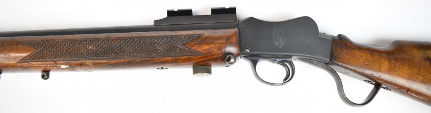BSA Martini-Henry .22 Hornet underlever-action target rifle with named lock, sling mounts, scope rails and 29 inch barrel, overall length 112cm, serial number S59468. PLEASE NOTE THAT A VALID RELEVANT FIREARMS CERTIFICATE IS REQUIRED TO VIEW OR PURCHASE THIS LOT AND FOR ALL SHOTGUNS OR RIFLES PLEASE ENSURE YOU HAVE THE RELEVANT CERTIFICATE BEFORE BIDDING.