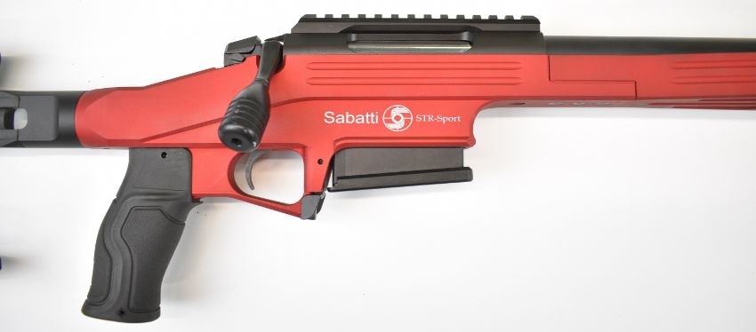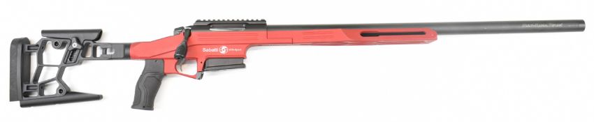 Sabatti STR-Sport 6.5mm Creedmoor bolt-action rifle with textured pistol grip, red metal body, adjustable composite skeleton stock, multi-shot magazine, scope rail and 28.5 inch barrel, overall length 123cm, serial number R96465, in original fitted carry case. PLEASE NOTE THAT A VALID RELEVANT FIREARMS CERTIFICATE IS REQUIRED TO VIEW OR PURCHASE THIS LOT AND FOR ALL SHOTGUNS OR RIFLES PLEASE ENSURE YOU HAVE THE RELEVANT CERTIFICATE BEFORE BIDDING.