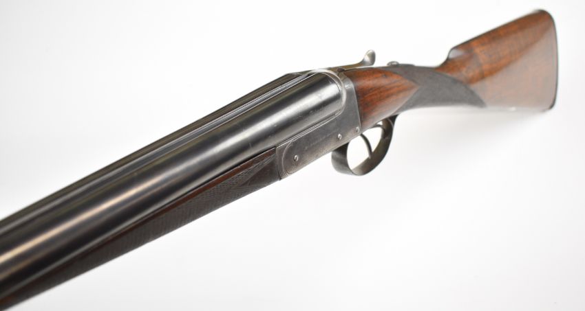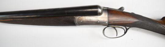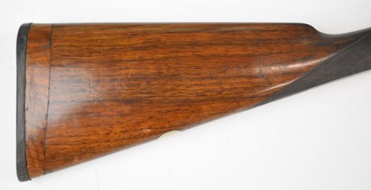 Henry Clark & Son 16 bore side by side shotgun with named locks, chequered grip and forend, double trigger and 28 inch barrels, overall length 113.5cm, length of pull 37.5cm, serial number 11260. PLEASE NOTE THAT A VALID RELEVANT SHOTGUN CERTIFICATE IS REQUIRED TO VIEW OR PURCHASE THIS LOT AND FOR ALL SHOTGUNS OR RIFLES PLEASE ENSURE YOU HAVE THE RELEVANT CERTIFICATE BEFORE BIDDING.