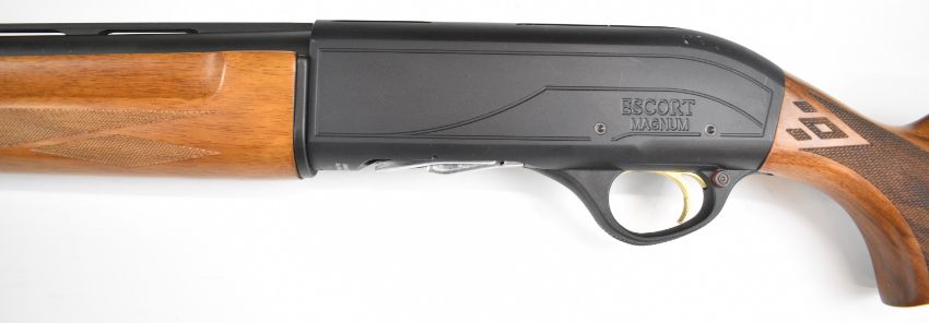 Hatsan Escort Magnum 12 bore 3-shot semi-automatic shotgun with chequered semi-pistol grip and forend, vented rib and 28 inch multi-choke barrel, overall length 125cm, length of pull 37cm, serial number 494418. PLEASE NOTE THAT A VALID RELEVANT SHOTGUN CERTIFICATE IS REQUIRED TO VIEW OR PURCHASE THIS LOT AND FOR ALL SHOTGUNS OR RIFLES PLEASE ENSURE YOU HAVE THE RELEVANT CERTIFICATE BEFORE BIDDING.