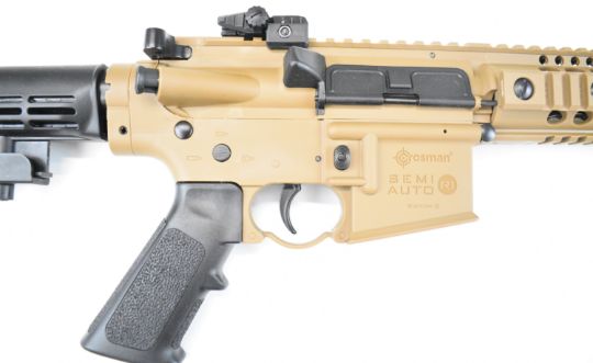 Crosman Semi Auto R1 .177 CO2 air rifle with textured pistol grip, composite tactical stock, multi-shot magazine, adjustable sights and scope rail, serial number 21H081683, in original box. PLEASE NOTE IF YOU REQUIRE POSTAGE ALL POST 1939 AIR GUNS CAN ONLY BE SENT TO AN RFD.
