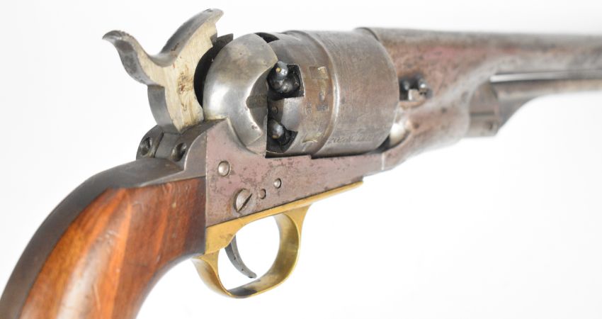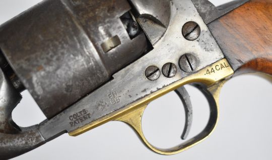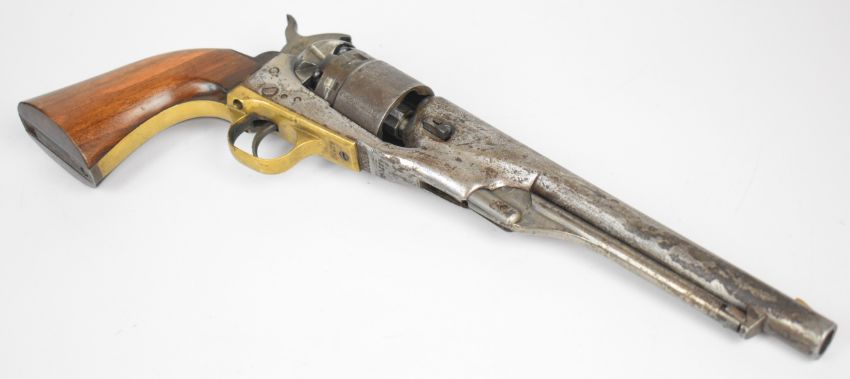 Deactivated Colt .44 six-shot single-action revolver with brass trigger guard, wooden grips and 8 inch barrel, overall length 37cm, serial number 42702, with deactivation certificate dated 14/04/25.