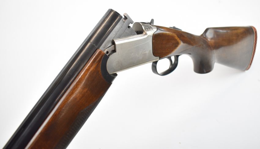 Dan Arms 12 bore over and under ejector shotgun with named action, chequered semi-pistol grip and forend, single trigger, vented top rib and 28 inch multi-choke barrels, overall length 113.5cm, length of pull 35cm, serial number 21866, in fitted faux leather case. PLEASE NOTE THAT A VALID RELEVANT SHOTGUN CERTIFICATE IS REQUIRED TO VIEW OR PURCHASE THIS LOT AND FOR ALL SHOTGUNS OR RIFLES PLEASE ENSURE YOU HAVE THE RELEVANT CERTIFICATE BEFORE BIDDING.