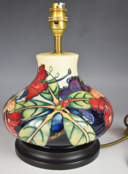 Moorcroft pedestal table lamp decorated in the Simeon pattern, H27cm