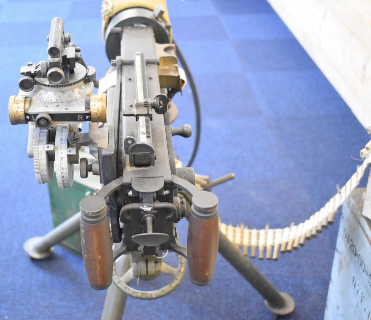 Deactivated Australian Vickers Mk.I .303 heavy machine gun with dial sight, folding ladder sights, water cooling system stamped 'T65 B 2246' below ministry broad arrow, condener hose, canvas water jacket, flash suppressor, wooden spade grips with inbuilt oil bottles and 28 inch barrel, serial number B2246, on fully adjustable metal tripod marked 'Mount Tripod M.G. Mk. IV' and stamped 'No. 4603 RT 1942', in wooden cases together with a War department fuel can, dial sight carry case, 100 inerts cartridges and metal ammunition case, with deactivation certificate dated 14/04/2025.