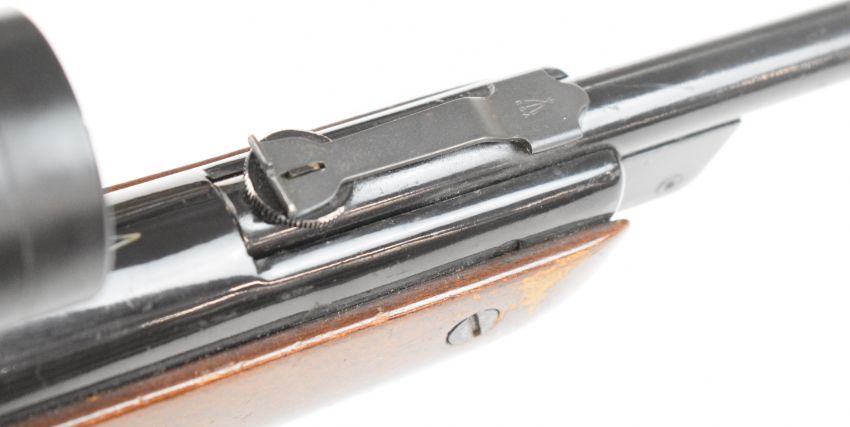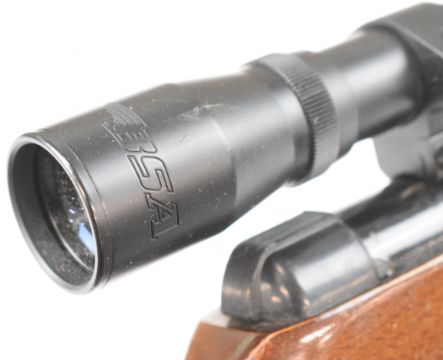 BSA Meteor Mk. II .22 air rifle with semi-pistol grip, adjustable sights and BSA scope, serial number B44748. PLEASE NOTE IF YOU REQUIRE POSTAGE ALL POST 1939 AIR GUNS CAN ONLY BE SENT TO AN RFD.