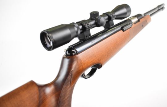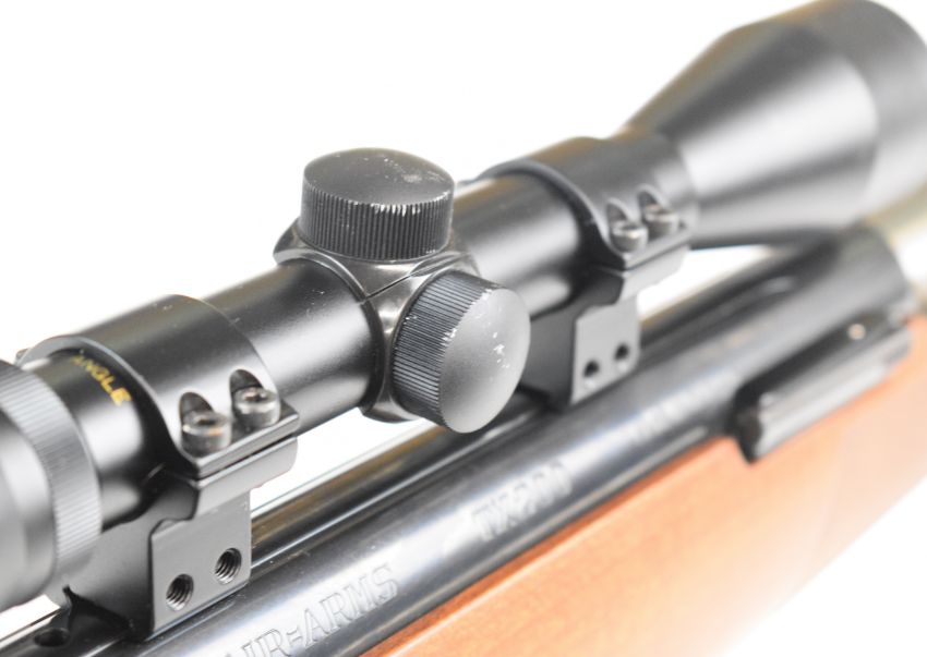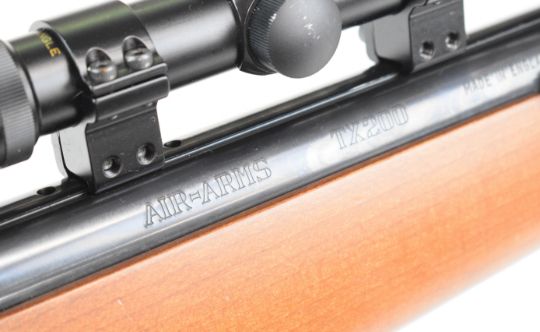 Air Arms TX200 .22 under-lever FAC air rifle with chequered semi-pistol grip and forend, adjustable trigger, raised cheek piece and Bisley scope, serial number 14028. PLEASE NOTE THAT A VALID RELEVANT FIREARMS CERTIFICATE IS REQUIRED TO VIEW OR PURCHASE THIS LOT AND FOR ALL SHOTGUNS OR RIFLES PLEASE ENSURE YOU HAVE THE RELEVANT CERTIFICATE BEFORE BIDDING.