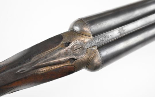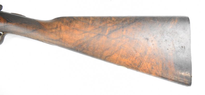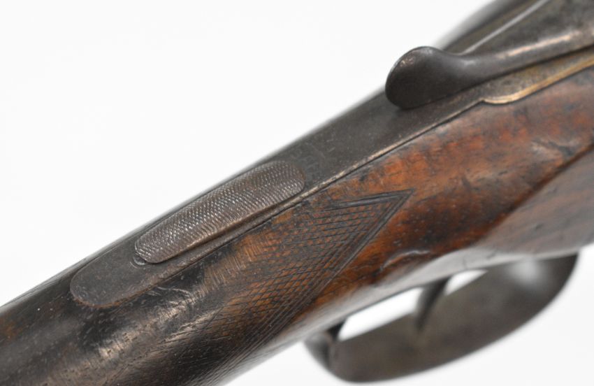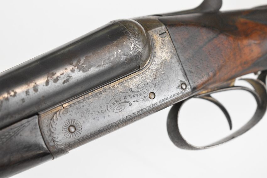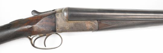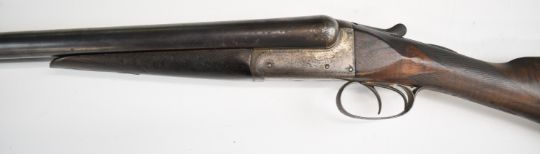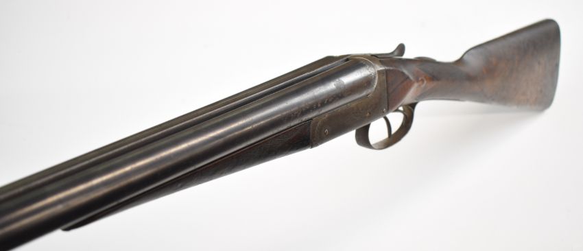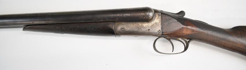 Army & Navy CS Ltd 12 bore side by side shotgun with named and engraved locks, engraved underside, trigger guard, top plate, thumb lever and fences, chequered grip and forend, carved teardrop to the wrist, vacant cartouche to the underside of the stock, double trigger and named 2½ inch chambered 28 inch barrels, overall length 113.5cm, length of pull 37.5cm, serial number 24009. PLEASE NOTE THAT A VALID RELEVANT SHOTGUN CERTIFICATE IS REQUIRED TO VIEW OR PURCHASE THIS LOT AND FOR ALL SHOTGUNS OR RIFLES PLEASE ENSURE YOU HAVE THE RELEVANT CERTIFICATE BEFORE BIDDING.