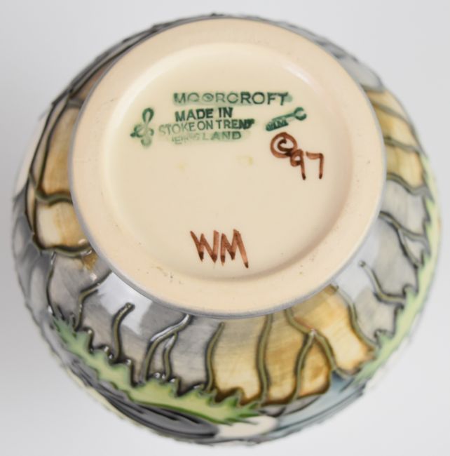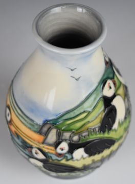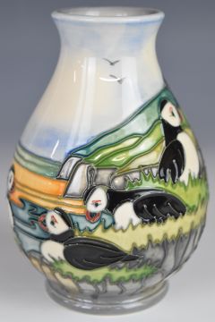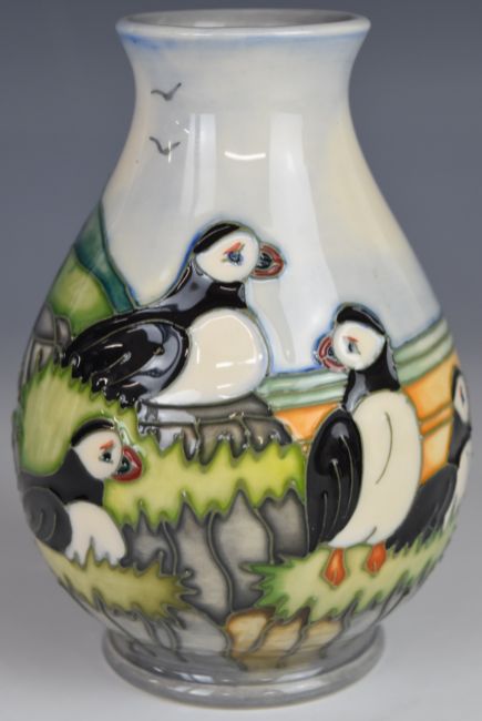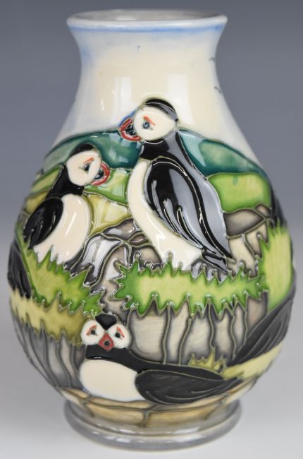 Moorcroft pedestal vase decorated in the Puffin pattern, dated 97, H14cm