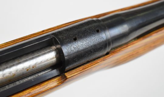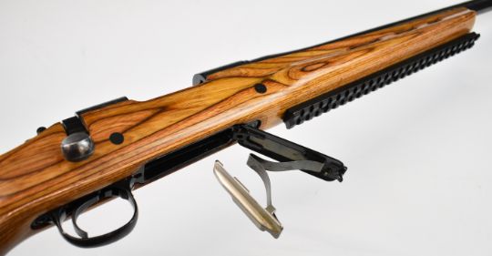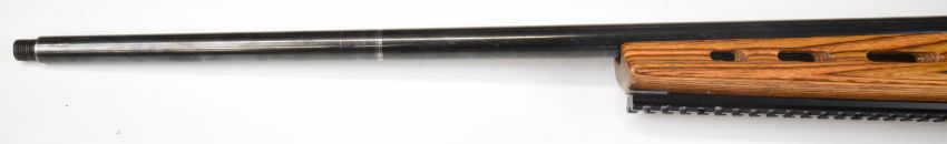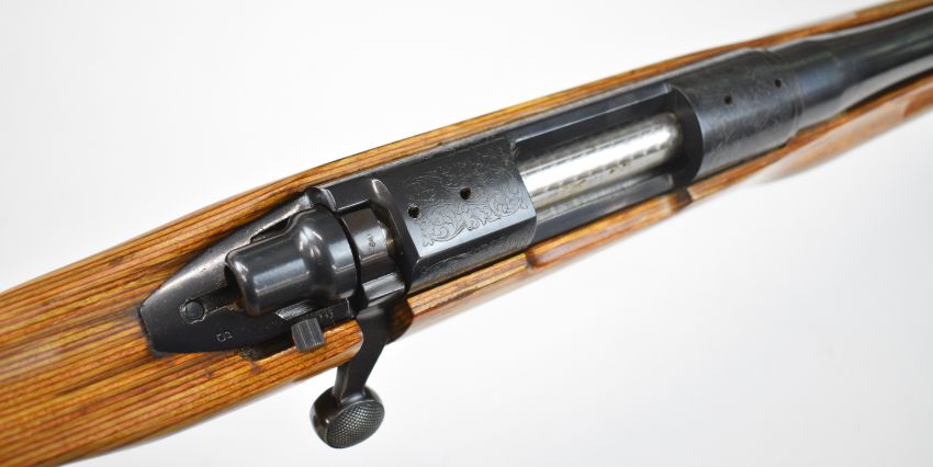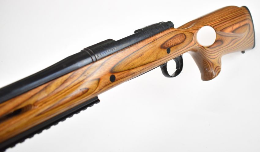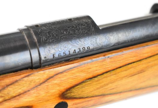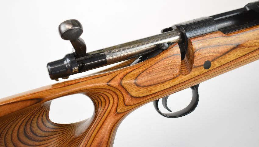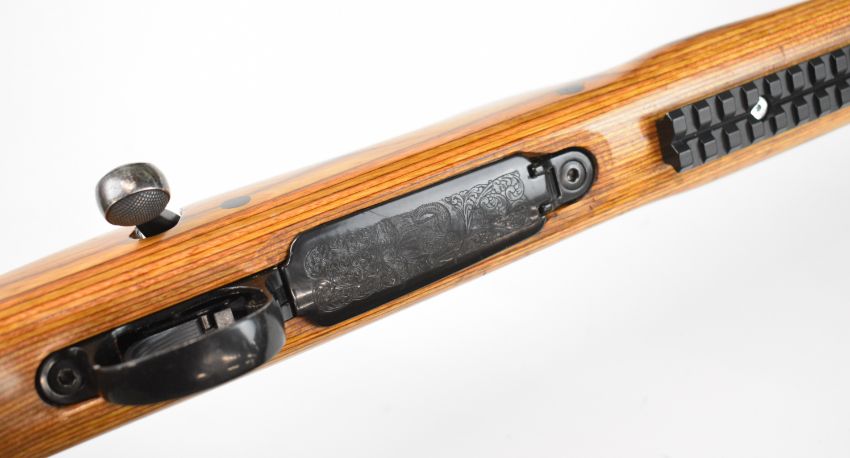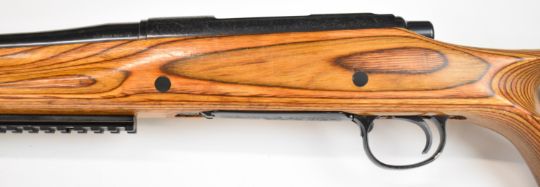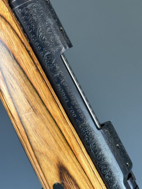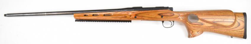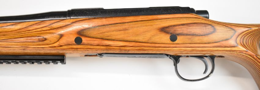 Remington Model 700 6mm bolt-action rifle with engraved action, laminate show wood stock, thumb-hole grip, raised cheek piece, sling mounts and 25.5 inch barrel, overall length 113.5cm, serial number E6514399. PLEASE NOTE THAT A VALID RELEVANT FIREARMS CERTIFICATE IS REQUIRED TO VIEW OR PURCHASE THIS LOT AND FOR ALL SHOTGUNS OR RIFLES PLEASE ENSURE YOU HAVE THE RELEVANT CERTIFICATE BEFORE BIDDING.