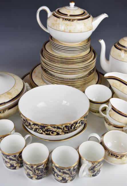 Wedgwood dinner tea and coffee ware decorated in the Cornucopia pattern, at least six place settings but seven dinner plates and seven soup dishes, approximately 60 pieces