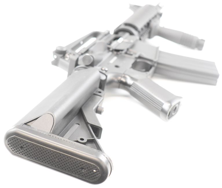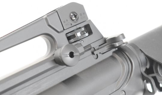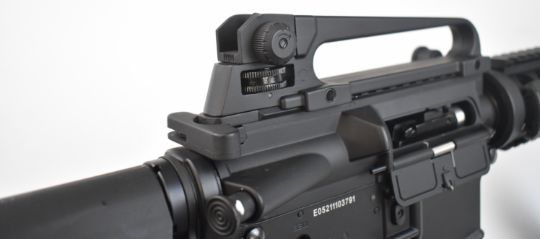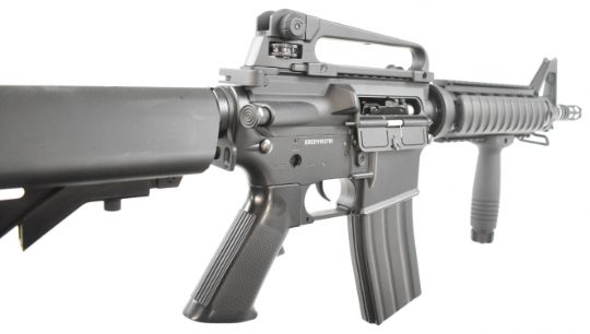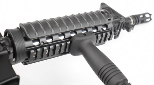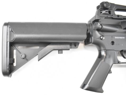 Cybergun FN Herstal US Government M4-03 Carbine .177 COassault style air rifle with chequered pistol grip, tactical stock and adjustable sights, serial number E05211103652, in original box with instruction manual. PLEASE NOTE IF YOU REQUIRE POSTAGE ALL POST 1939 AIR GUNS CAN ONLY BE SENT TO AN RFD.