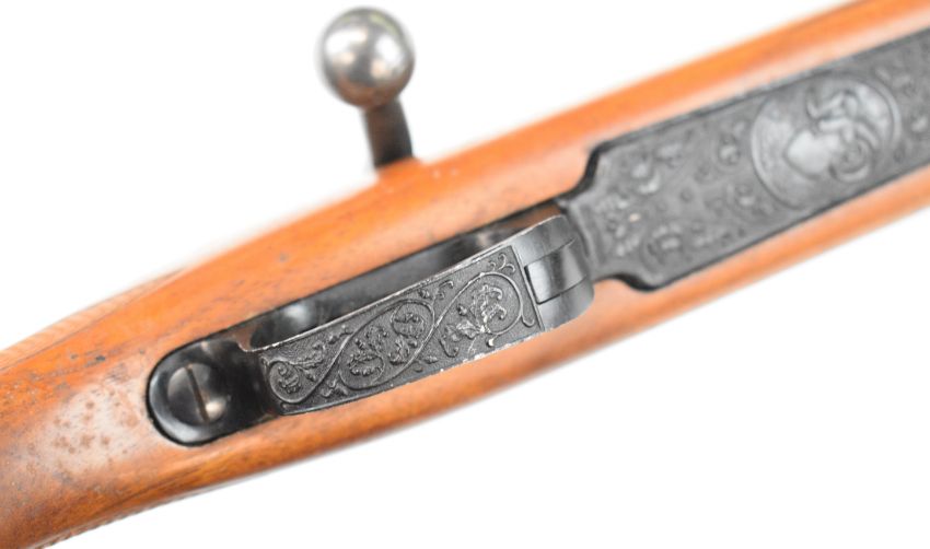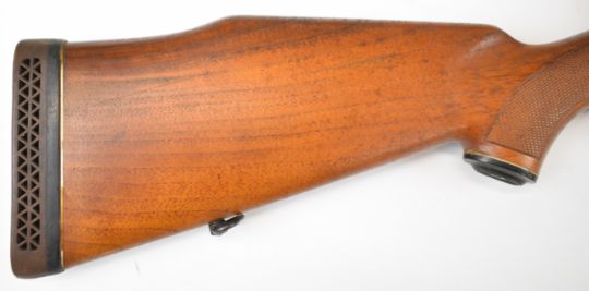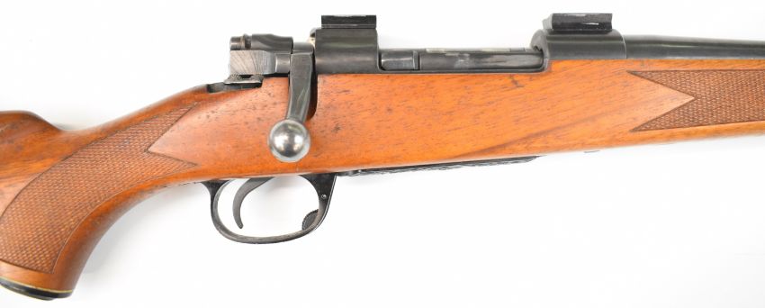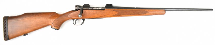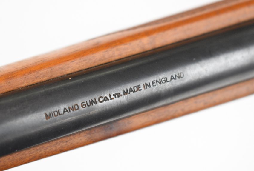 Midland Gun Co .243 Winchester bolt-action rifle with chequered semi-pistol grip and forend, raised cheek piece, sling mounts scope rails and 23 inch barrel, overall length 111cm, serial number 27339. PLEASE NOTE THAT A VALID RELEVANT FIREARMS CERTIFICATE IS REQUIRED TO VIEW OR PURCHASE THIS LOT AND FOR ALL SHOTGUNS OR RIFLES PLEASE ENSURE YOU HAVE THE RELEVANT CERTIFICATE BEFORE BIDDING.