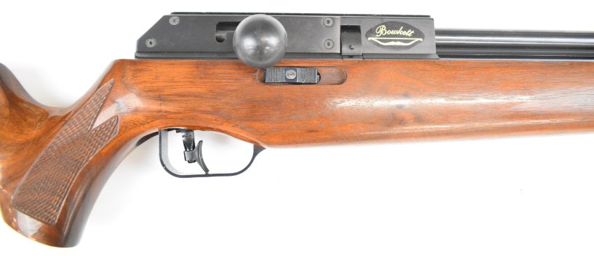 John Bowkett BSA Super 10 .177 PCP FAC air rifle with chequered semi-pistol grip, raised cheek piece, adjustable trigger, 10 shot magazine and sound moderator, serial number DN02069. PLEASE NOTE THAT A VALID RELEVANT FIREARMS CERTIFICATE IS REQUIRED TO VIEW OR PURCHASE THIS LOT AND FOR ALL SHOTGUNS OR RIFLES PLEASE ENSURE YOU HAVE THE RELEVANT CERTIFICATE BEFORE BIDDING.