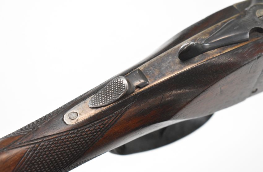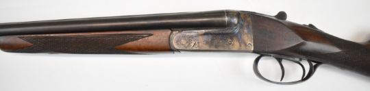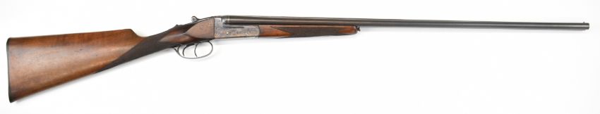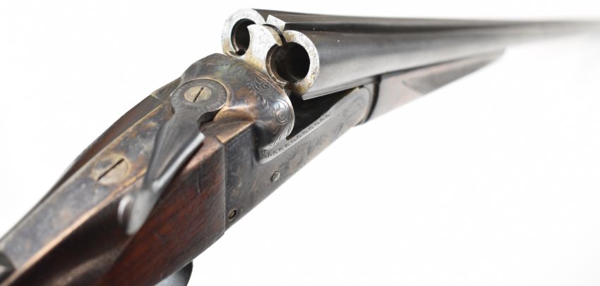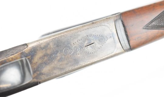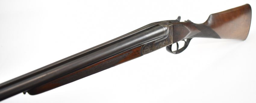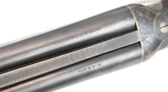Laurona .410 side by side shotgun with engraved locks, underside, trigger guard, thumb lever and fences, chequered grip and forend, double trigger and named 27.75 inch barrels, overall length 113.5cm, length of pull 36cm, serial number 84433. PLEASE NOTE THAT A VALID RELEVANT SHOTGUN CERTIFICATE IS REQUIRED TO VIEW OR PURCHASE THIS LOT AND FOR ALL SHOTGUNS OR RIFLES PLEASE ENSURE YOU HAVE THE RELEVANT CERTIFICATE BEFORE BIDDING.