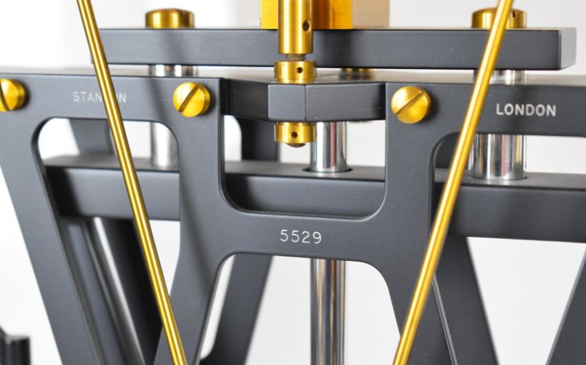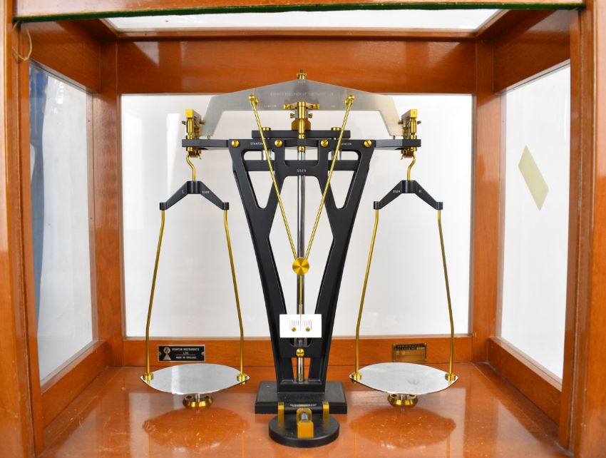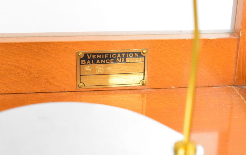 Two County of Southampton beam scales comprising De Grave & Co. Ltd. 4 oz example with verification marks from 1909 onwards, the other Stanton with verification marks for 1954, both with county name to beam and in glazed wooden cases, width of larger 62cm