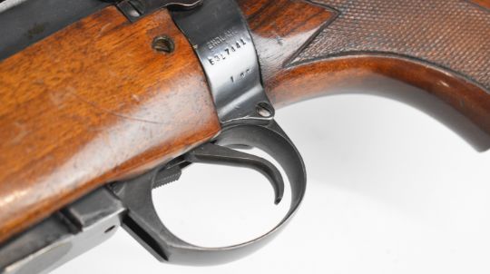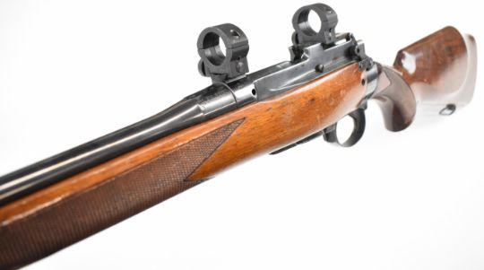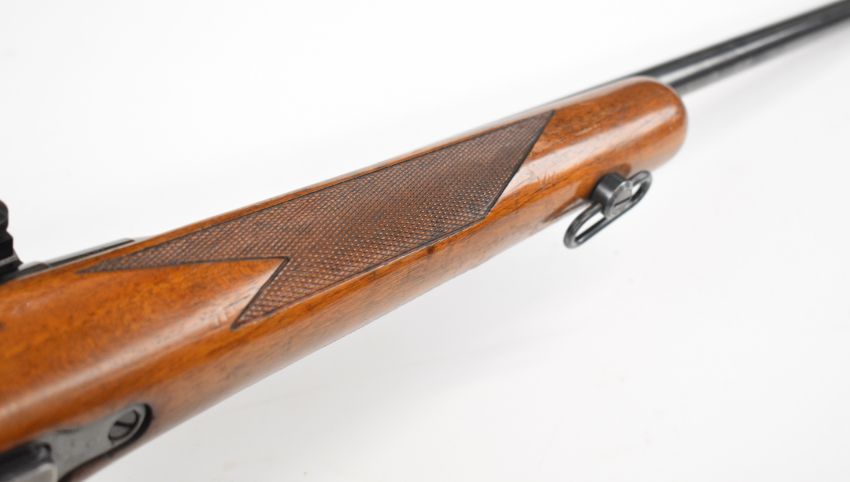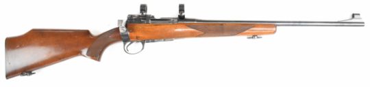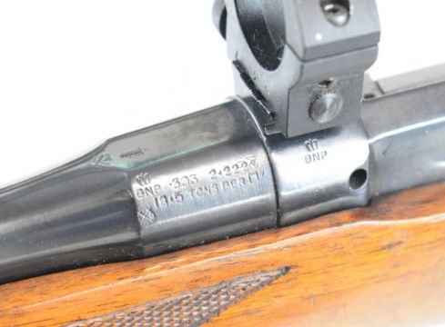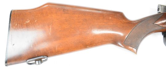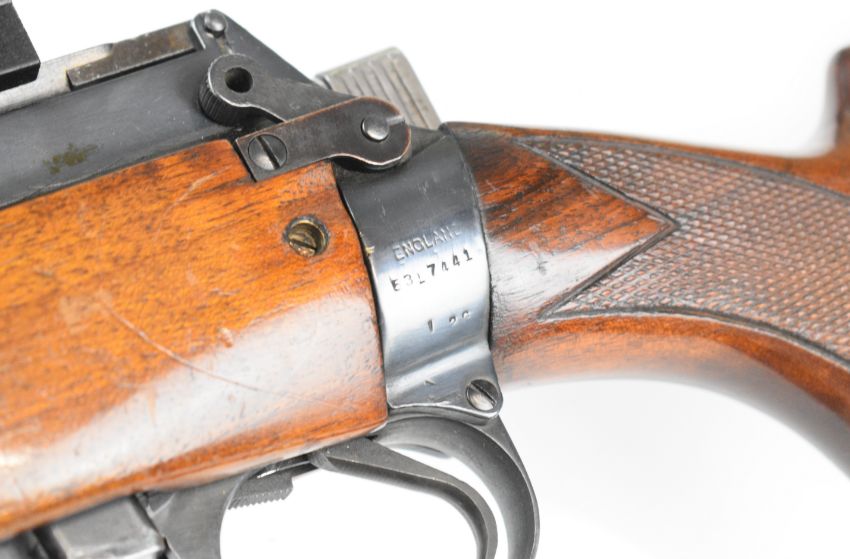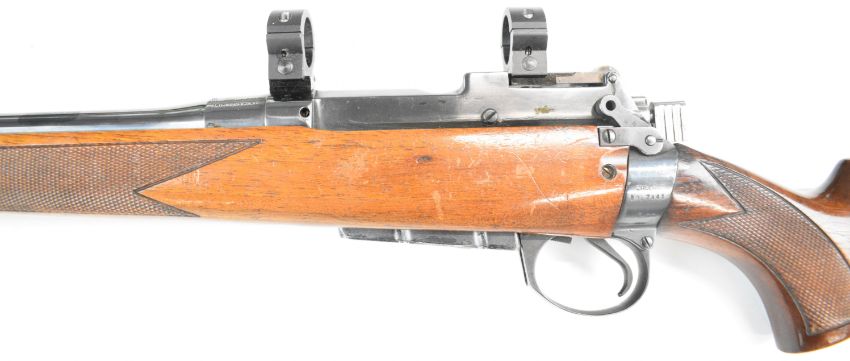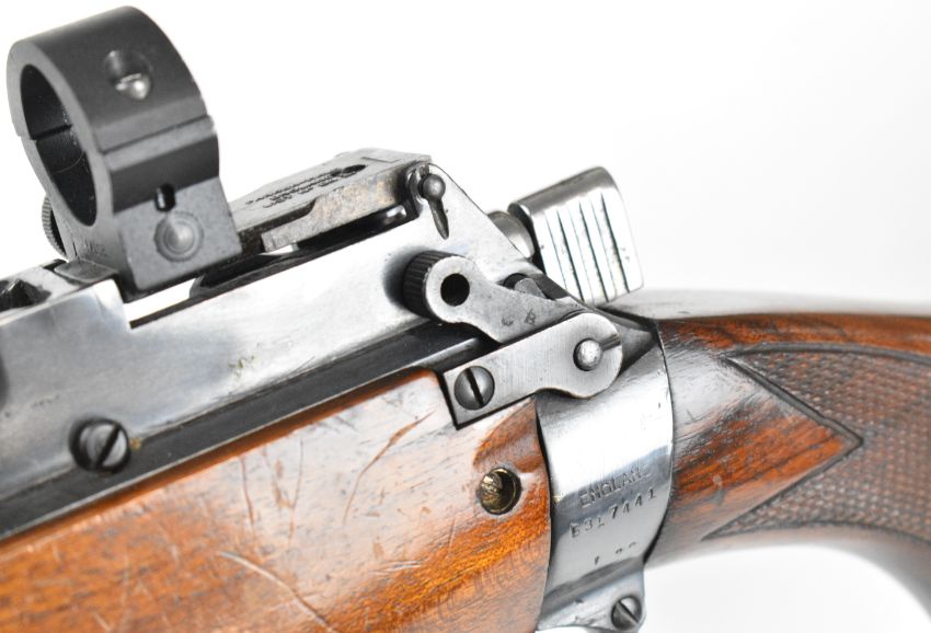 Enfield .303 bolt-action rifle with chequered semi-pistol grip and forend, sling and scope mounts, multi-shot magazine and 22 inch barrel, overall length 106cm, serial number 53L7441. PLEASE NOTE THAT A VALID RELEVANT FIREARMS CERTIFICATE IS REQUIRED TO VIEW OR PURCHASE THIS LOT AND FOR ALL SHOTGUNS OR RIFLES PLEASE ENSURE YOU HAVE THE RELEVANT CERTIFICATE BEFORE BIDDING.