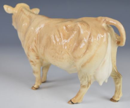 Beswick Charolais bull and cow figures, boxed, tallest 12cm
