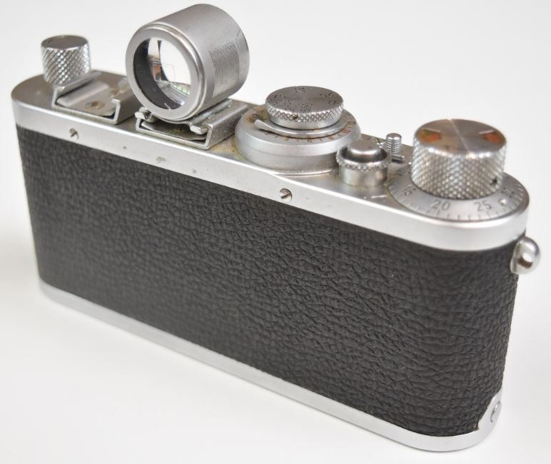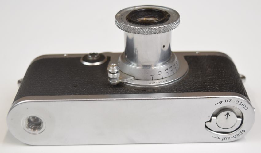 Leica 1f 35mm camera, serial number 673610, circa 1953/4, with Leitz Elmar f=5cm 1:3.5 lens, 5cm viewfinder and rangefinder, in original leather case, together with two Leica instruction manuals