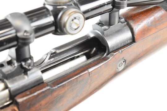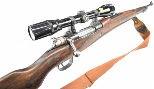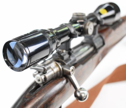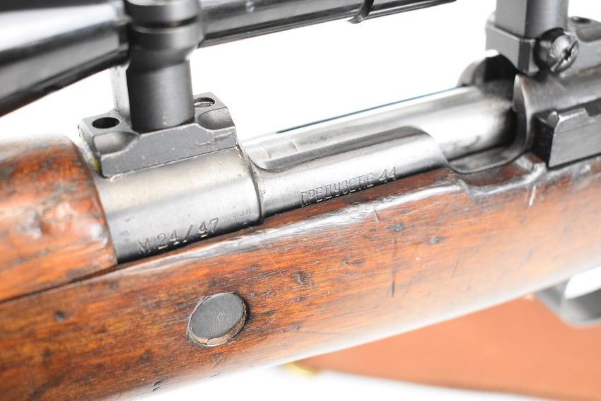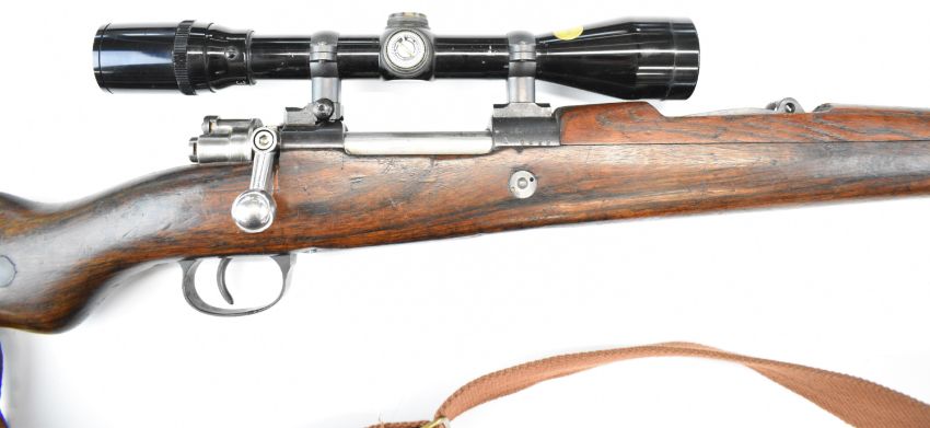 Mauser Model 24 /47 7.92mm bolt-action service rifle with canvas sling, Original Model 15 3-9x40 Wide Angle scope and 24 inch barrel, overall length 109.5cm, serial number A6373. PLEASE NOTE THAT A VALID RELEVANT FIREARMS CERTIFICATE IS REQUIRED TO VIEW OR PURCHASE THIS LOT AND FOR ALL SHOTGUNS OR RIFLES PLEASE ENSURE YOU HAVE THE RELEVANT CERTIFICATE BEFORE BIDDING.
